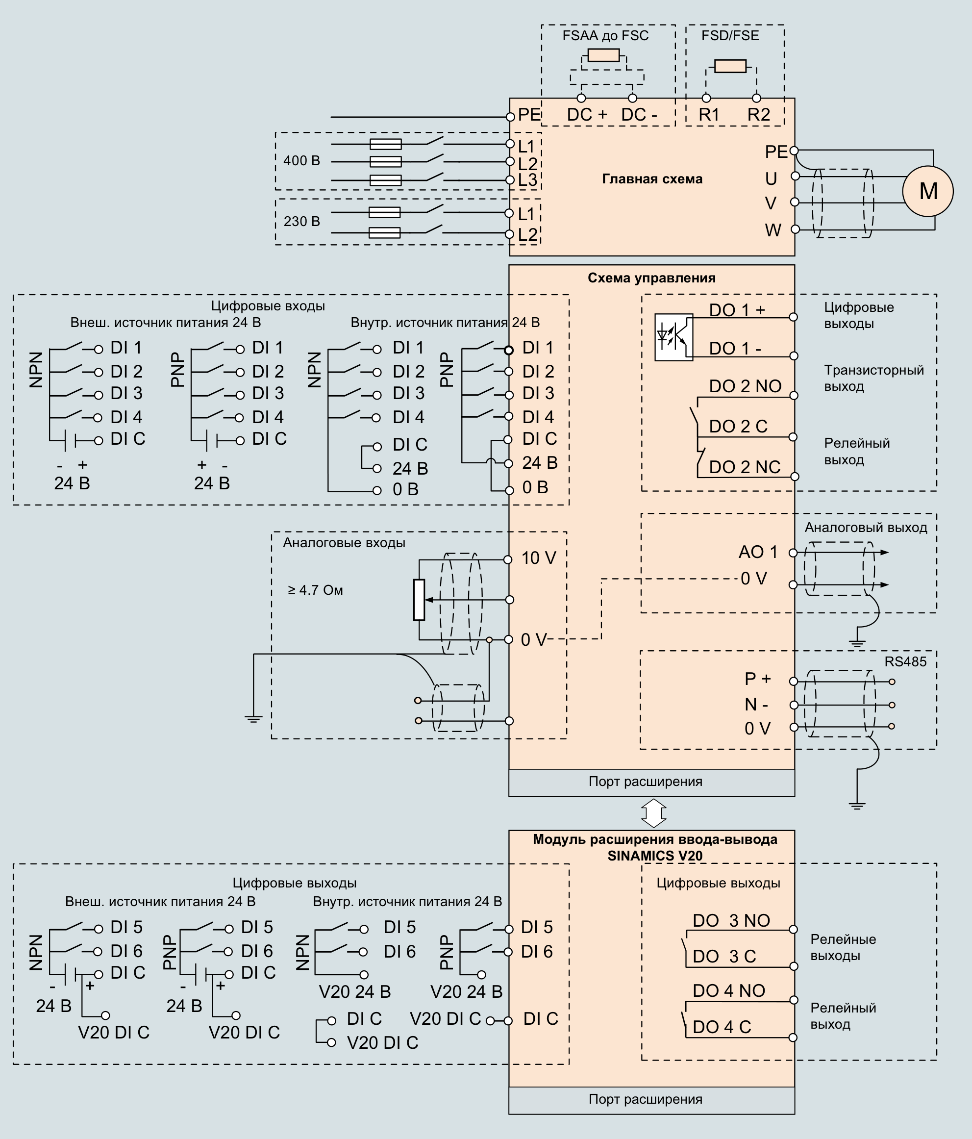 Примеры подключения SINAMICS V20